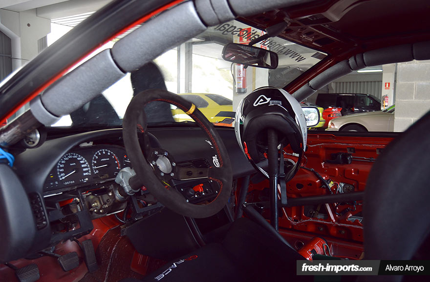 Tras este pequeño espacio de tiempo en el que concluyeron las tandas de time attack, el nivel inferior del parking fue tomando forma de “mini paddock“, ya que estas tandas de drift en Castellolí, fueron en muy pequeña escala, pero con buena organización. Algunos amigos de los drifters aparecían con máquinas tan asombrosas como esta…