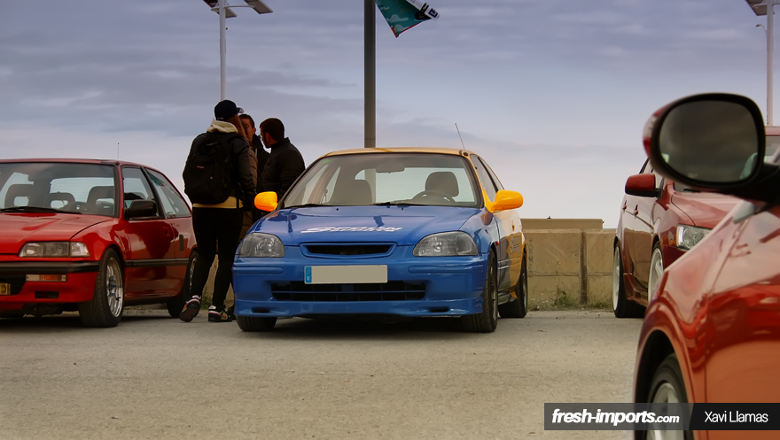 Imposible no hablar entre amigos, aquí vemos a Jordi de JDM BOX con su Civic EG hablando con Xavi, nuestro fotógrafo.