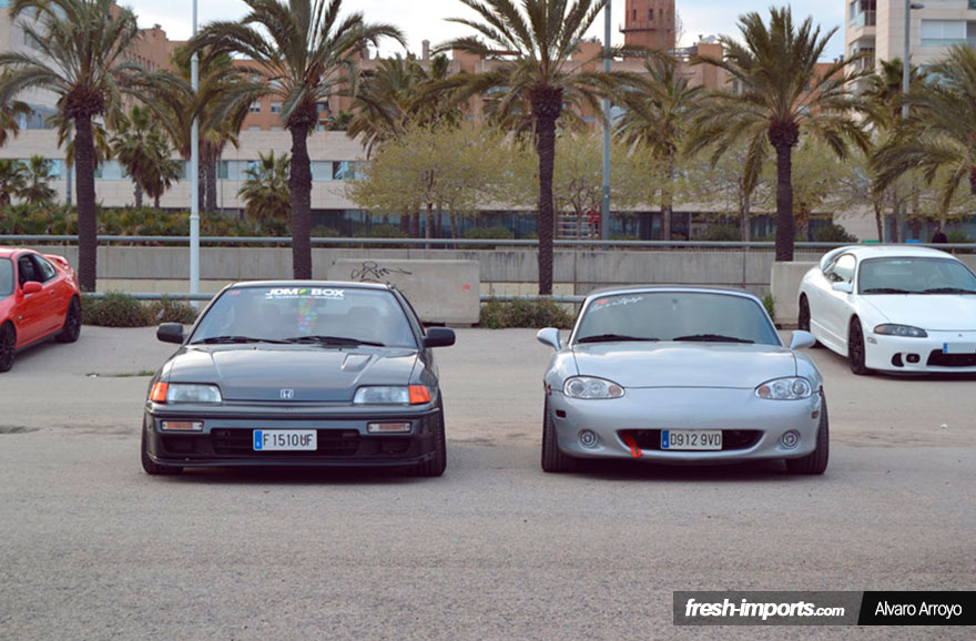 Dos grandes conocidos de Fresh Imports, el Mazda MX5 de Kevin al que por cierto vimos ganar la prueba del limbo en otro meeting stance, y el Honda CRX que os presentamos también hace unas semanas.