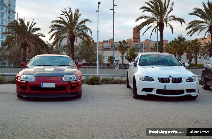 Un duelo que divide opiniones. ¿Que preferís un buen 6 cilindros biturbo japonés o un poderoso V8 alemán? Como habréis comprobado algún infiltrado había entre los coches japoneses en Barcelona.