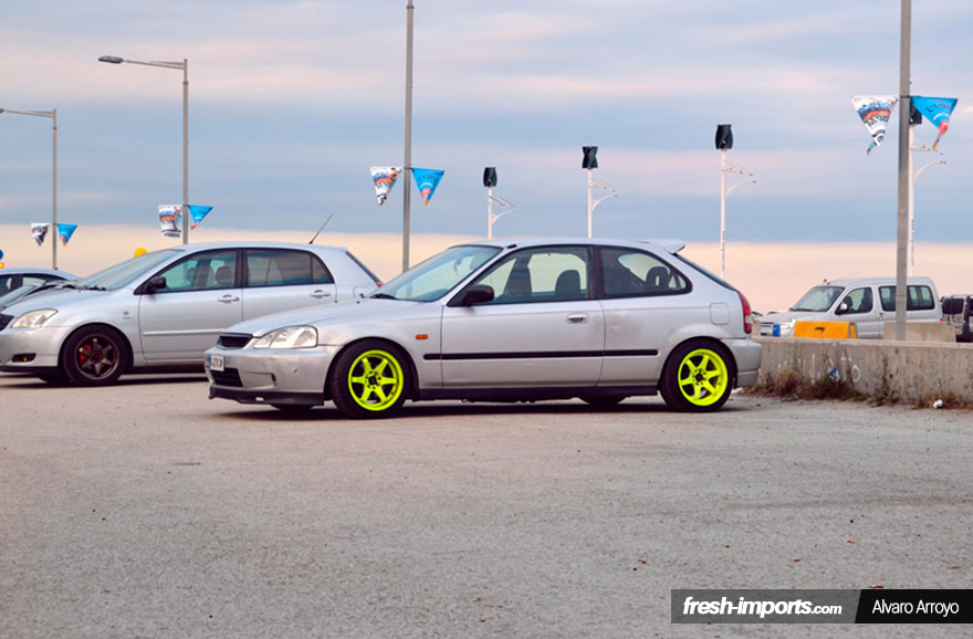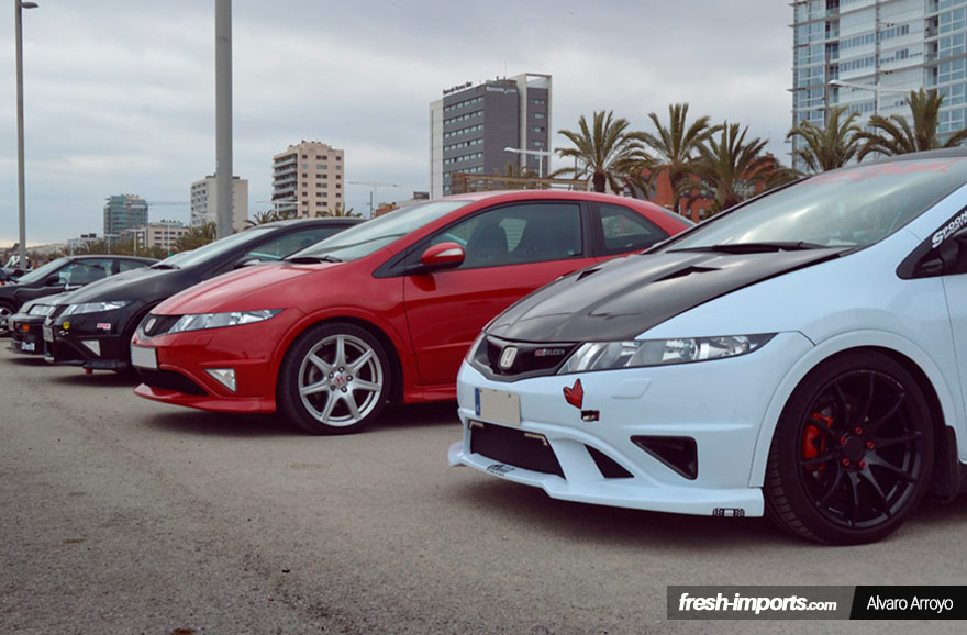 No todo consiste en Civics de anteriores generaciones, el Civic de octava generación estuvo muy presente en esta kdd de coches japoneses en Barcelona.