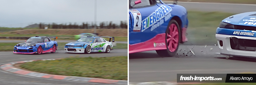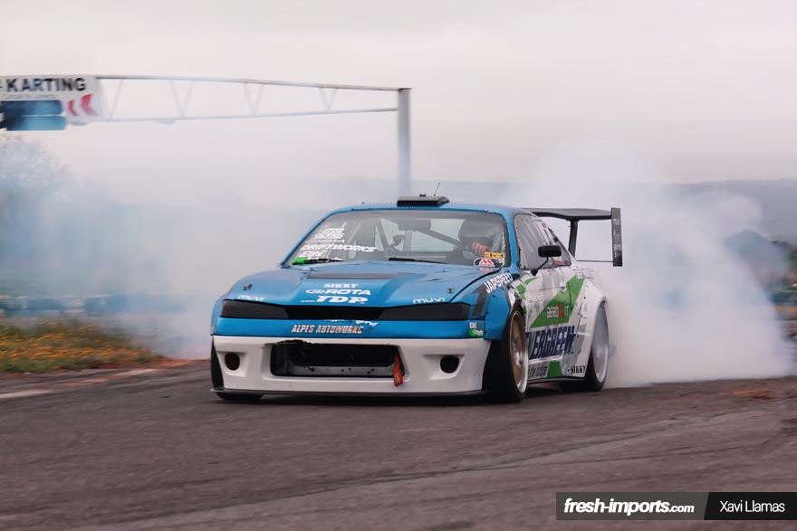 Falta de potencia no tenía Lluis López, que sentado tras el volante de su S14 con motor LS de Corvette, “se pegó” literalmente a Sebastian durante las rondas de reconocimiento, un juego que a los que nos gusta el drift, nos encanta.