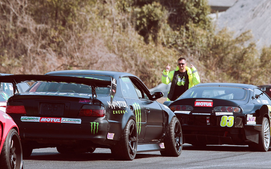 Además de los numerosos podios que ha conseguido en el drift, tuvimos la oportunidad de verlo levantar el trofeo junto a Vaughn Gittin Jr. al mejor equipo en la ronda final del KOE.