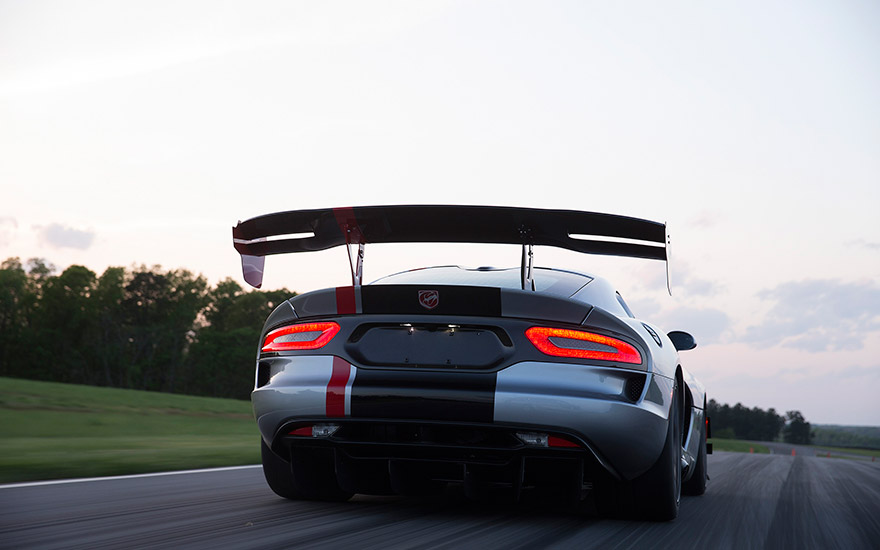 Entre los añadidos, podemos encontrar un splitter delantero desmontable, cuatro canards, un nuevo capó SRT con rejillas desmontables, un difusor trasero de carbono, y uno de los más impresionantes alerones traseros que existen, con una anchura de 1,8 metros y totalmente ajustable. Es tan impresionante, que los ingenieros de Dodge han experimentado una carga aerodinámica de casi una tonelada, tres veces más que el Viper Time Attack 2.0.