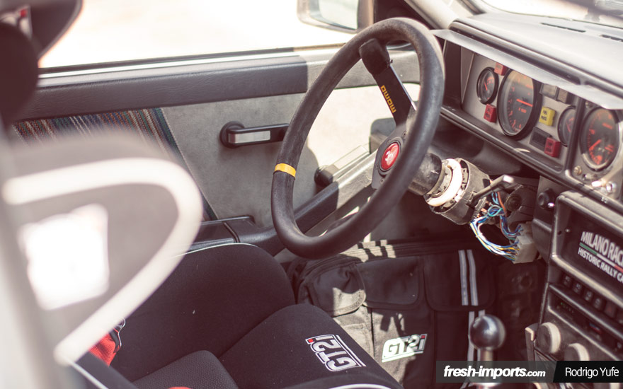 Pone los pelos de punta escuchar arrancar un motor de la vieja escuela como este. Cabe decir que en el modelo de calle del HF 4WD, que solo se fabricaron 5000 unidades, el motor era distinto al modelo de rally. En la versión de calle impulsaban las 4 ruedas motrices apenas 165cv. En cambio para el vehículo que iba a disputar las pruebas del mundial incorporaron un motor biárbol que ya montaba el Fiat 131, que con gestión electrónica y turbocompresor desarrollaba 250cv.