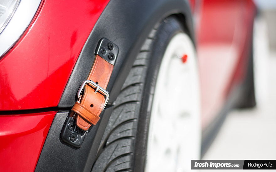 Otro detalle que tengo que reconocer que me encantó fueron los broches clásicos de competición en piel que unen el parachoques delantero con la carrocería.