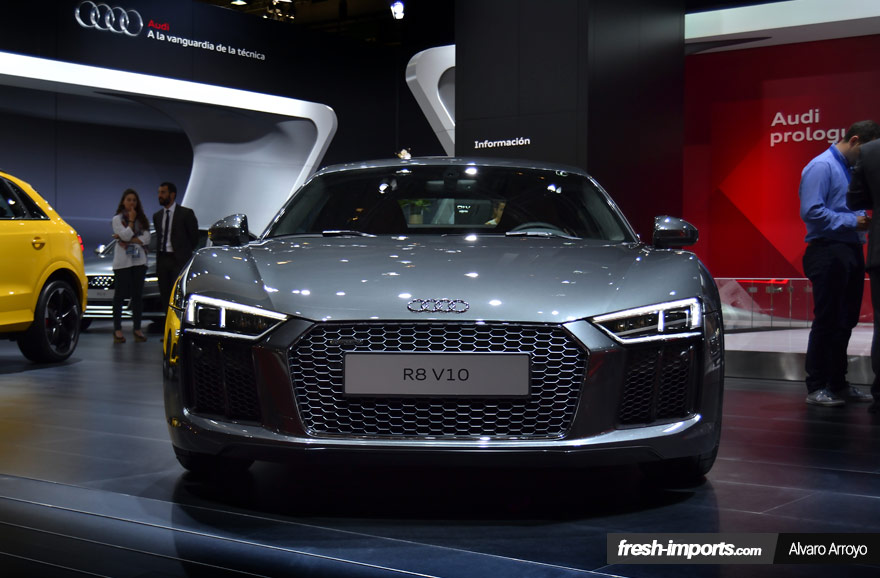 Una vez en el centro del pabellón nos decantamos en ir hacia abajo, normal, era al lado al que menos esfuerzo había que hacer debido a la pendiente. Allí nos encontramos el sobrio pero elegante stand de Audi, en el que el nuevo Q7 el RSQ3, el nuevo R8 y el RS3 te invitaban a pasar y ponerte cómodo mientras los fotografiábamos.
