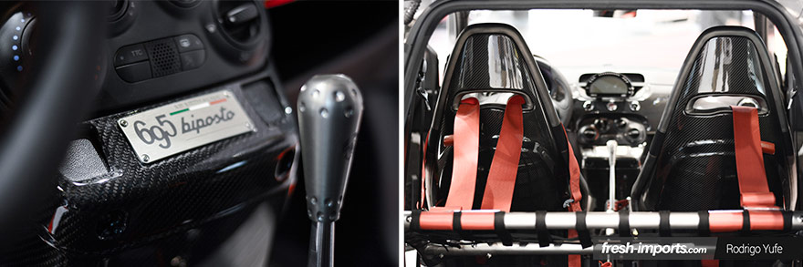 Se trata del 595 Biposto, un coche construido con un solo fin, correr en pista. Incorpora una caja de cambios de dientes rectos de serie, ventanas de policarbonato y relojes e indicadores con la última tecnología de competición, además de un paquete de fibra de carbono que le da un look interior espectacular.