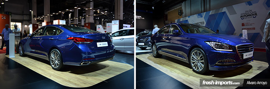 La cosa va de “H”, ya que frente al stand de Honda estaba el de Hyundai, en el cual posaba su nuevo buque insignia, el Genesis…