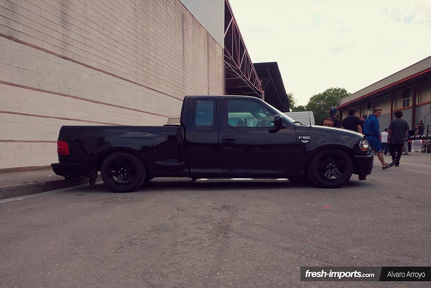 Los vehículos bajos no solo pueden ser coupés o turismos. Nos encontramos con esta Ford F150 muy baja, tanto que era muy fácil estar delante del frontal y poder ver la parte superior de su salpicadero desde fuera.