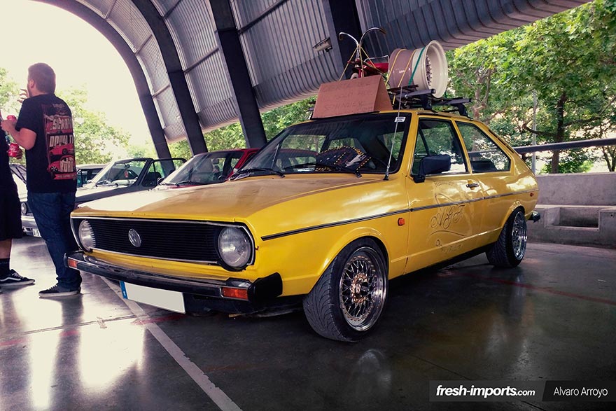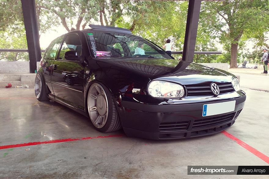 El Stance estuvo presente en este 10º Aniversario del club Panscraper. Fijaros que VW Golf MKIV, las llantas son de un Hummer H2 y el techo panorámico de un Scirocco R, al igual que el interior. Menudo trabajo bien hecho.