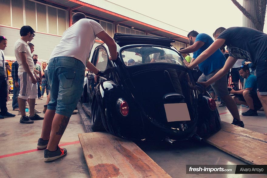 Éste último tiene un detalle que nos pareció peculiar, la rueda trasera cubierta. No podemos apreciar la caída de las ruedas traseras que hacen aún más bajo este Beetle, pero viendo los demás nos la podemos imaginar…