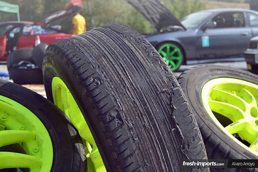 Así es como acabaron algunos neumáticos al finalizar el día, totalmente gastados. Y no es para menos, el nivel que pudimos ver en estas tandas gracias a Drift Catalunya y a Green Kart fue espectacular, a parte de un trato a los fotógrafos ejemplar.