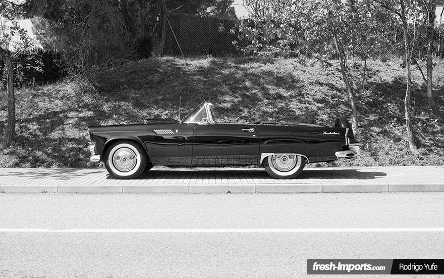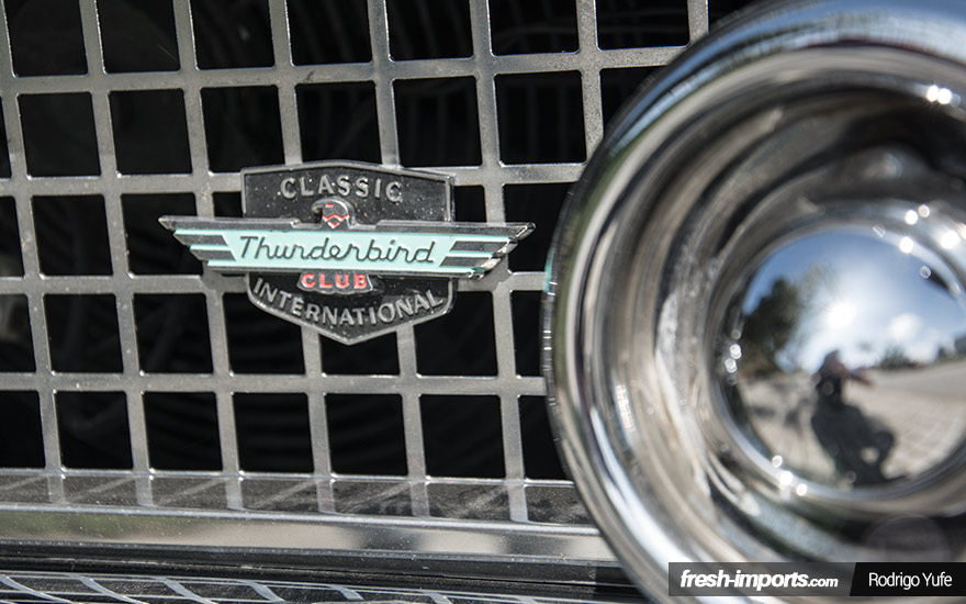 La primera versión apareció en 1954 aunque fue declarada versión de 1955. Este ejemplar que fotografié es un Ford Thunderbird de 1956. Realmente es difícil diferenciarlo con el anterior, pero hay ciertas partes que lo delatan. Como por ejemplo, la insignia delantera. Unas banderas entrecruzadas para la versión del 55 respecto al logo Thunderbird para la del 56.