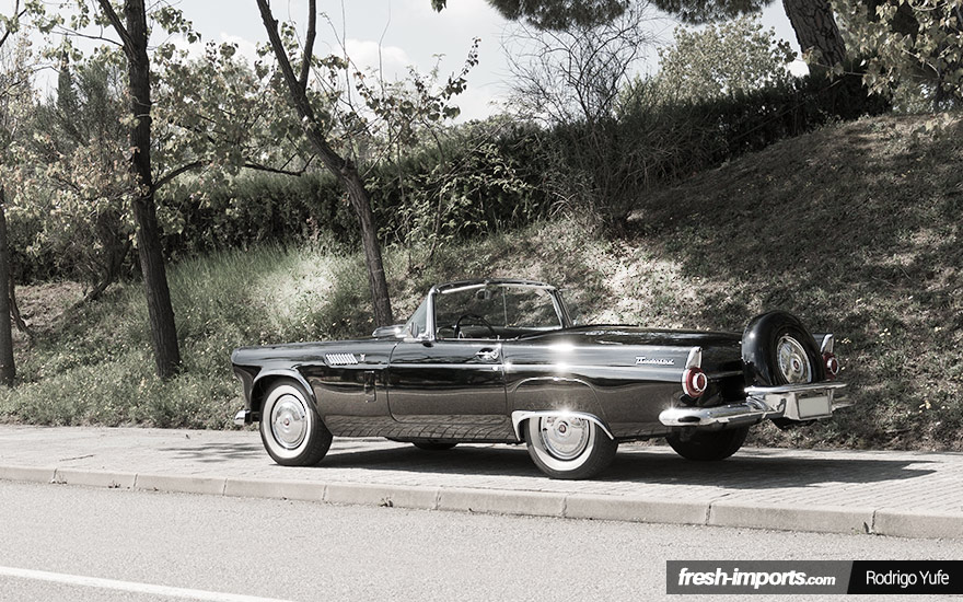 El kit continental (rueda trasera a la vista) fue un extra en los Thunderbirds de otros años, pero venía de serie en los de 1956. Personalmente le da un toque americano que agrada, pero, ¿que opináis vosotros?