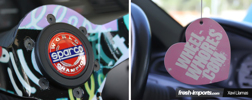 Jesús, el dueño, sin duda ha hecho que su coche adopte este estilo USDM. El coche es un Honda Civic Coupé EJ2 que viene de Canadá. Como buen coche importado del otro lado del charco tiene el marcador en millas, y cambio automático, cosa muy común allí. Se contempla cambiarle a este Civic la caja de cambios, por una manual, ya que para los más puristas, las sensaciones de conducción al no poder controlar el embrague en el coche, son peores.