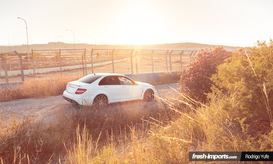 Y para terminar, quise darle un toque especial a la sesión, gracias a la ayuda de mis compañeros Manel y Mario, obteniendo esta fotografía al mas puro estilo rolling resaltando todas las formas del Mercedes Benz C63 AMG Prior Design gracias a la luz de la puesta de sol valenciana. Da gusto trabajar rodeado de un buen equipo.