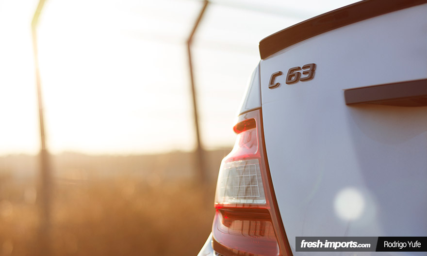 Respecto a su trasera, tengo que decir que las endiduras a ambos lados del parachoques son perfectas. Siendo muy similares a las del C63 Black Series, han conseguido una armonía con los demás elementos estéticos del Mercedes. Si os habéis fijado, algunos Mercedes Benz C63 AMG Prior Design suelen llevar alerones grandes siguiendo la estética similar a la del Black Series, pero opino que el escogido para esta preparación es más elegante que el resto, encajando al 100% con la insignia del automóvil.