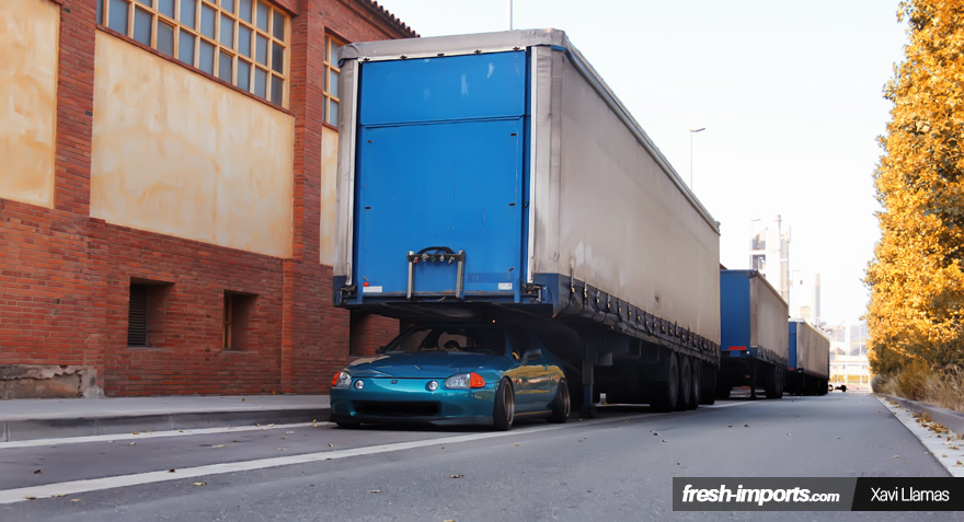 No podíamos acabar la sesión con otra foto, el CRX es todo un clásico de las pruebas de limbo, en las que compiten por ser el coche más bajo, y el de Javi, lo ha conseguido en más de una ocasión, seguro, igual que ha conseguido esconderse debajo de este tráiler.