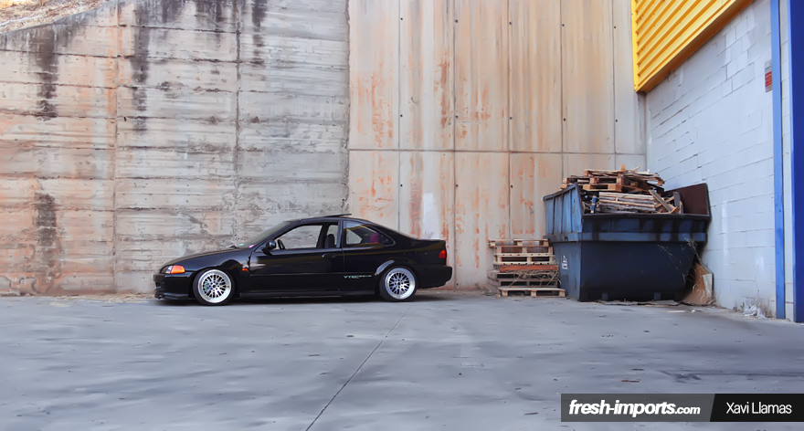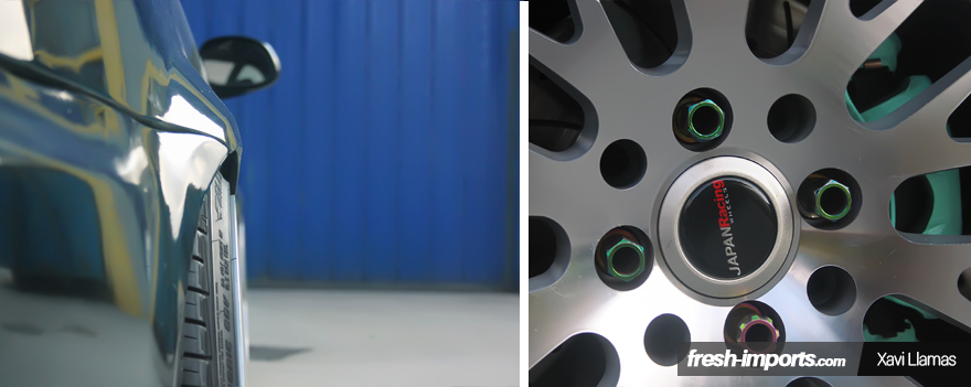 Las Japan Racing JR10 quedan espectaculares en este Civic, además de la bajada de altura gracias a las suspensiones roscadas y de los pasos de rueda agrandados. Todo este conjunto le otorga un aspecto muy bestia, o como algunos lo llamarían: “Muy gordo”.