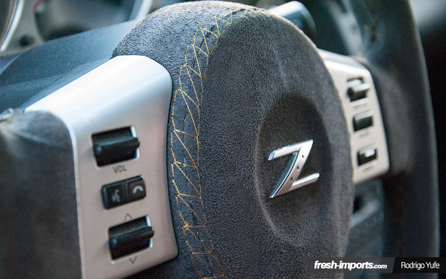 Una vez llegados al punto B, aparcamos los vehículos y esperando a que los demás fuesen llegando, nos pusimos a charlar sobre las modificaciones que cada uno había escogido para su máquina. El propietario de este Nissan 350z blanco lo había comprado tal cual. ¿Que os parece el volante retapizado en alcántara?