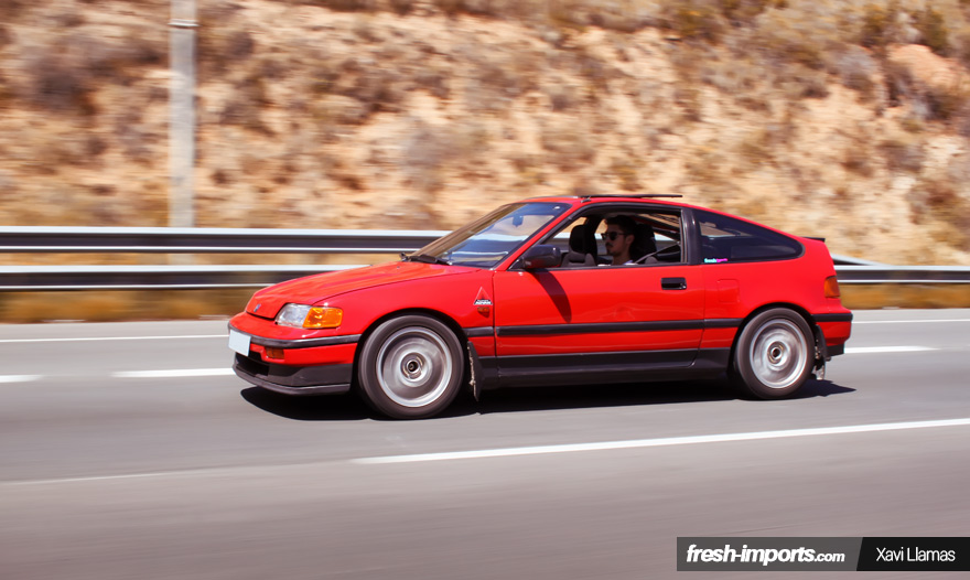Si hablamos del Honda CRX de Rubén podemos observar que monta unas llantas BBS RZ 407 originales de Volkswagen Golf Mk2, suspensión TA Technix regulable en altura, volante OMP original, quick release NRG Slim y sencillas restauraciones de motor.