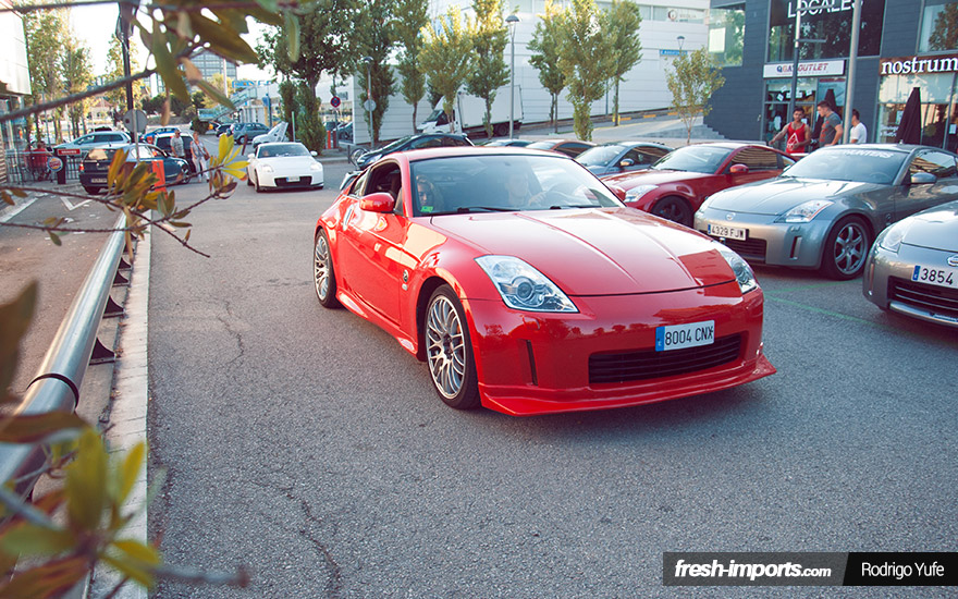 Agosto empezó con gran entusiasmo ya que pudimos formar parte de en una KDD de 350z. Ya sabéis de buena tinta que este coche significa mucho para nosotros ya que, podríamos decir que es uno de los representantes de Fresh Imports. Ya conocéis al 350z con kit Nismo de Alberto. En esta quedada se pudieron ver mas de 10 Nissan 350z juntos, algo que suele ser complicado, y ver algunos tan cuidados como este de la fotografía con kit prácticamente completo Nismo v1.