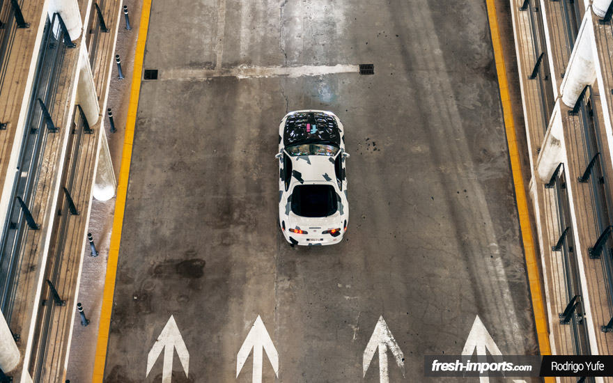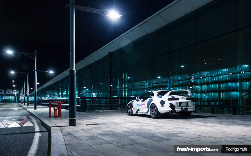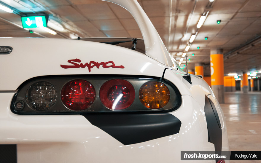 Si ya nos gusta ver a gente que lleven la pegatina común de Fresh Imports, imaginad como nos sentimos cuando un Fresher decide personalizar el coche a lo grande llevándonos en el capó y en las dos puertas. Inicialmente este Supra se vinilaba para un viaje entre amigos a Nurbürgring pero, por problemas en la caja de cambios ese viaje no pudo ser.