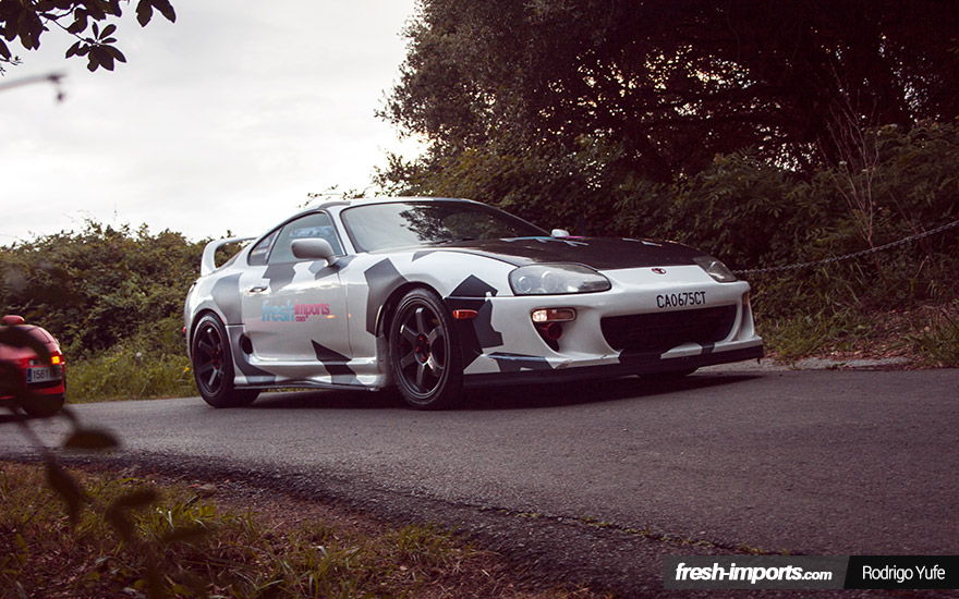 El supra que estáis viendo en las imágenes es el de Carlos. ¿Recordáis eso que siempre os digo en cuanto a los sueños? Exacto, lo de quien la sigue, la consigue. Pues este es uno de los claros casos en los que perseguir algo que uno tanto desea, la constancia y la paciencia dan sus frutos. No os daré muchas explicaciones de este coche ya que, en cuanto baje a Barcelona tenemos una sesión preparada para poderos enseñar con todo detalle esta maravilla japonesa. A grandes rasgos, este Toyota Supra fue importado de Suginami, un barrio de Tokio, Japón. En 2005 aterrizó en el Reino Unido y su tercer hogar fue la casa de Carlos. La história os puedo asegurar que es más que interesante. Además, ahora mismo le está haciendo el swap a 2JZ GTE. ¿Ganas de verlo acabado? ¡Nosotros muchísimas!