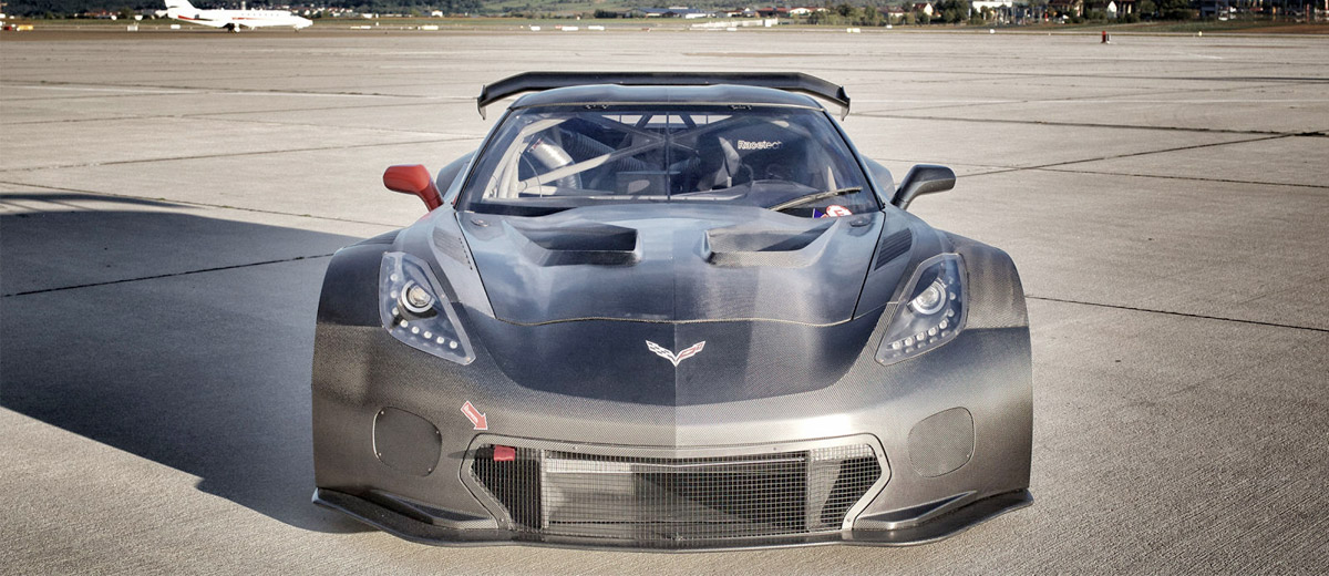 Y de ahí que, rizando el rizo de una manera extrema, los ingenieros después de dos años de duro trabajo, hayan dado a luz a este espectáculo llamado Corvette C7 GT3-R. De buenas a primeras, cuando uno lo mira no sabe bien bien lo que tiene que mirar. Impacta y mucho. El kit de carrocería es radical. En otras palabras, da miedo. Ya de por si el Corvette C7 de serie tiene formas afiladas y agresivas, pero si le añadimos una preparación de competición encima, pasa lo que pasa y podéis ver el resultado en las fotografías.