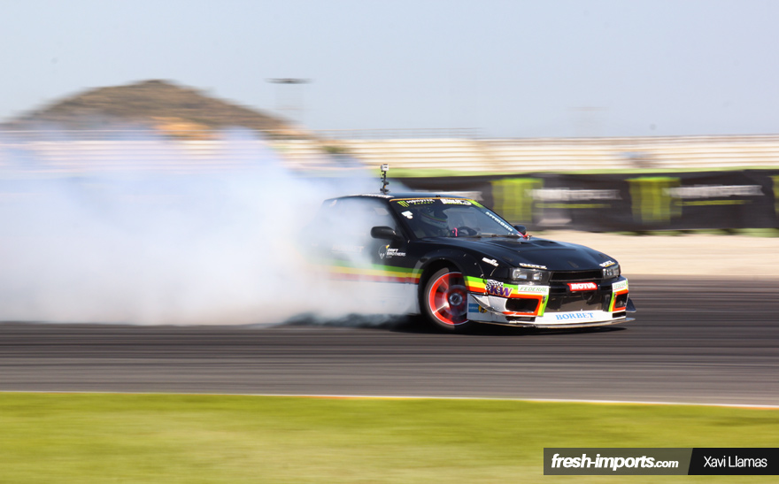 Quizás a los oídos no queda muy bonito decir que este Nissan S13 Pick-Up es un Frankenstein, pero lo que si quedaba bonito en los oídos era el rugir de esta bestia en el circuito de Cheste fabricando nubes con sus gomas traseras.