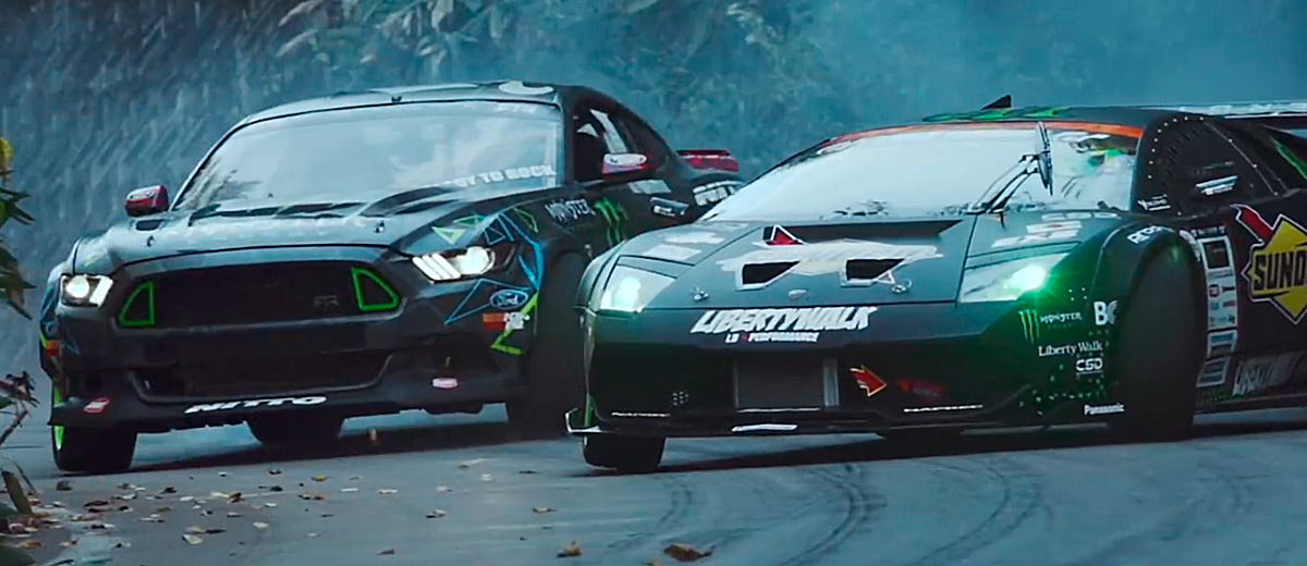 Ese es el principal gran atractivo del vídeo al que han bautizado como Battledrift. Ver a Daigo Saito haciendo drift con un Lamborghini y a Vaughn Gittin Jr. junto a la puerta del Murciélago con su Mustang RTR.