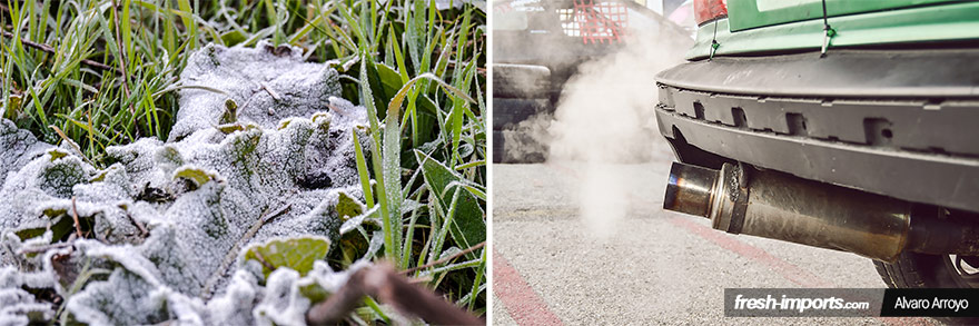 Llegamos bien preparados, varias capas de ropa en el torso, chaquetas capaces de hacerte sobrevivir en el ártico e incluso yo con dos pares de calcetines. No fue suficiente. Como veis la estampa en el circuito era gélida a más no poder. Algunos decían que la temperatura andaba en 0ºC y no nos extraña, los escapes de los coches rezumaban humo a más no poder, y no precisamente por ningún fallo o fuga en el motor, y el paisaje estaba literalmente congelado.