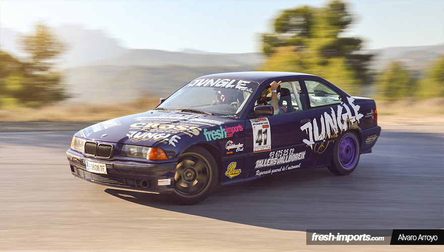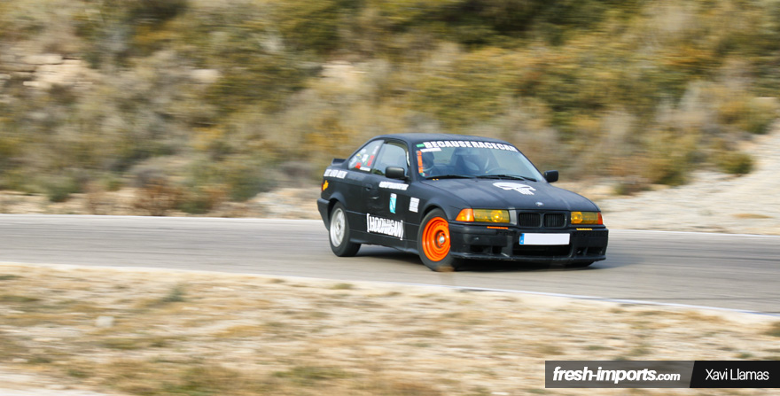 Otro de los que disfrutaron a tope fue Felix con su E36 sedan. Estrenaba kit de giro Wisefab ¿Se nota? Tal vez en fotos no mucho, pero en vivo os aseguramos que le permitía ir a buscar el exterior de la pista con muchísima facilidad.