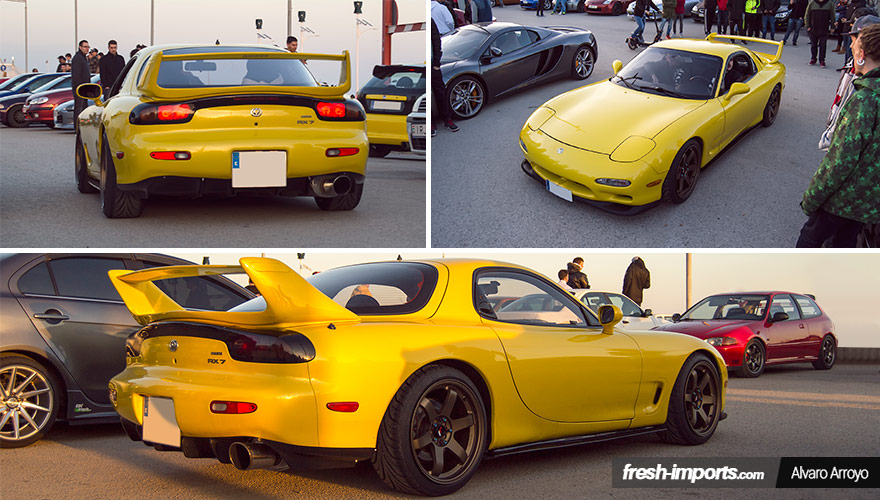 Alguno de los protagonistas de Initial D también se dejaron caer por allí. Keisuke Takahashi le quitó las pegatinas de los Redsuns a su RX7 FD3S y vino a Barcelona a exhibirlo.