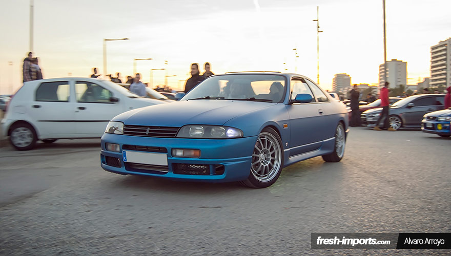 Fijaros que curioso este R33. Un GTS 25-T con un color azul mate que le queda espectacular al igual que las rarísimas llantas Enkei NT03+M. Este modelo incorpora el escalón inferior al RB26DETT. Se trata del RB25DET, un 2.5L de 6 cilindros, turboalimentado. Entregaba unos 250 cv, aunque más tarde incorporaron el RB25DET Neo 6: ¡Una variante con distribucion variable (con un sistema parecido al Vtec de Honda) que le hacía tener 280cv!