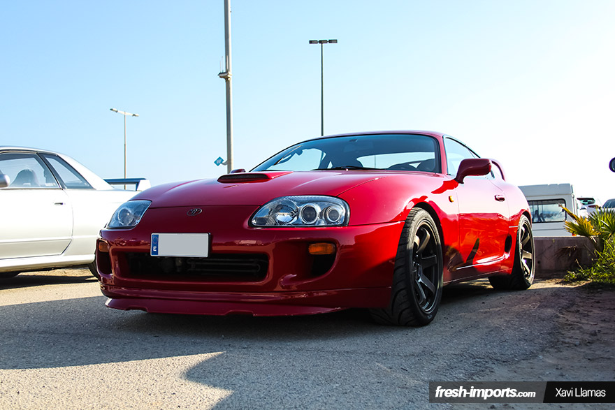 Una de las bestias japonesas más deseadas, es el Toyota Supra MKIV Twin Turbo. El poderoso 2JZ-GTE de 3 litros y doble turbo es capaz de entregar más de 500 cv con algunas modificaciones que no supongan cambiar internals. Pese a estar disfrutando como posesos en esta KDD de coches japoneses, el 27 de diciembre a las 12.30 del mediodía es posible que estuviéramos rozando una temperatura de 22ºC, por lo que decidimos ir a tomar algo unos cuantos, entre ellos el drifter Lluis López, piloto de éste S14a con motor V8.
