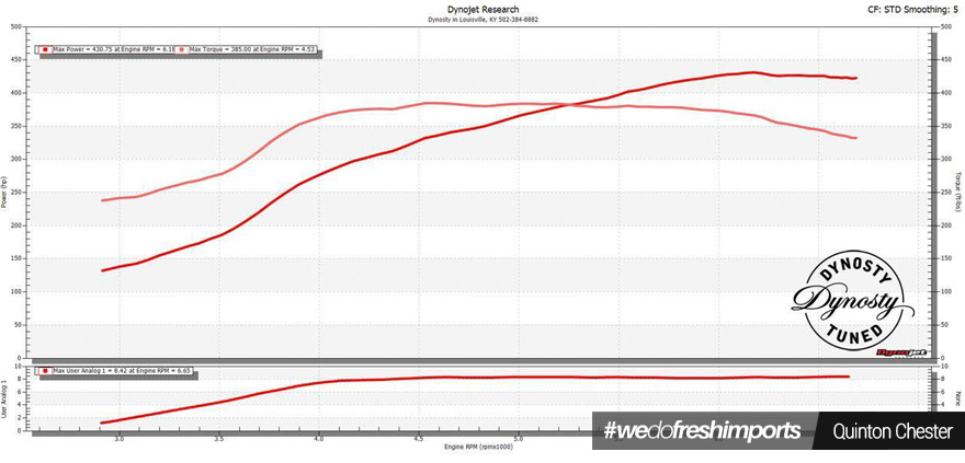 Uprev tuned by Dynosty on 8psi (430whp/385wtq)