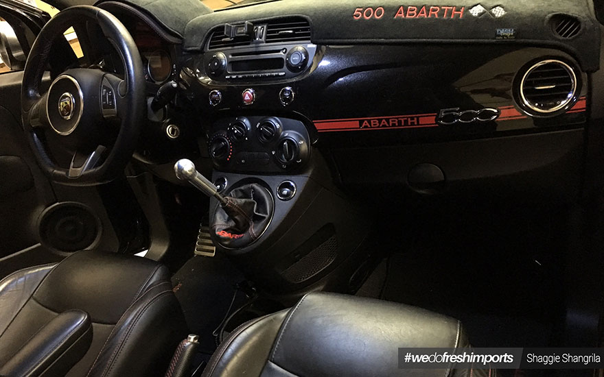 Todo el trabajo que se ha realizado en el coche, corre a cargo de su dueño, sus amigos, los cuales le hicieron la puesta apunto de la suspensión, y su padre, por lo que este coche es una autentica obra de garaje. A pesar de todo, y de lo “salvaje” que pueda ser, es el coche que Shagghie usa para el día a día. La filosofía con la que el propietario ha preparado su coche se basa un objetivo: Ir más rápido de lo que pudiste ir ayer. Esa es la mejor recompensa para él. Su pequeño escorpión es un “buen chico” bien preparado, divertido de manejar, rápido y sexy, pero con esto de los Abarth, siempre se quiere ser mas rápido, mas ágil y mas potente…