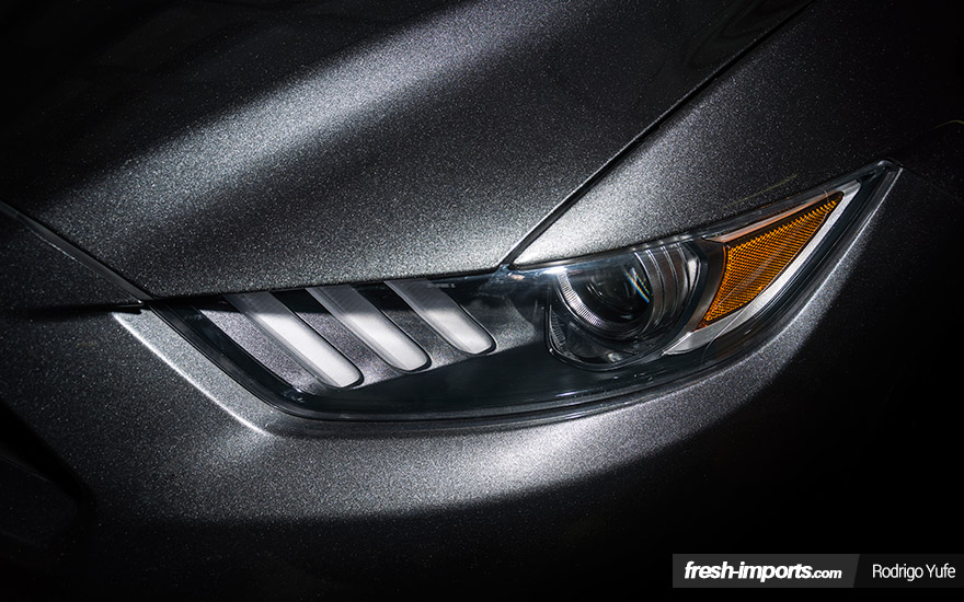 Dejando de lado por ahora el motor de 2015 2.3 Ecoboost y fijándonos en las diferencias que tiene esta 6ª generación respecto a la anterior, vemos de entrada que las lineas son mucho más afiladas. Frontalmente se aprecia un vehículo más ancho pero menos rudo por dos sencillas razones.