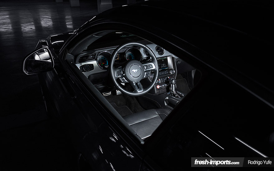 Después de hacer las primeras fotografías me monté en él para probar que deparaba el nuevo Ford Mustang 2015 2.3 Ecoboost, con este motor tan “polivalente”. Pero no sin antes fijarme y apreciar todos los detalles que este tenía por dentro. De acuerdo con la filosofía americana de utilizar bastante plástico dentro del habitáculo de sus vehículos, este modelo en concreto se parece más a un europeo en cuanto a acabados que no a un americano. Cuero por doquier, botones robustos, buena iluminación, etc. Desgraciadamente no todos los Ford Mustang 2015 2.3 Ecoboost llevan este equipamiento.