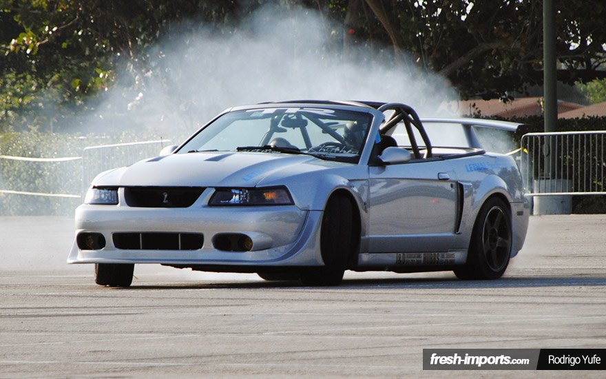 Pero aquí es donde entra la discrepancia de Ford respecto a las anteriores afirmaciones. Es lógico que las marcas tengan que adaptarse al mercado y creerme que estas grandes empresas invierten mucho dinero en estudios de mercado para asegurarse la jugada en este ajedrez tan competitivo. Aún así, quiero dejar constancia que, en mi opinión y en la de muchos otros, la compañía americana dejó atrás la esencia que el Mustang solía transmitir, con la fabricación del mismo desde 1979 hasta el año 2004. Hay gente que dice que la cuarta generación era espectacular pero sigo pensando que de Mustang tenía muy poco. Tuve la oportunidad de probar un GT de 2001 cuando estuve en Estados Unidos trabajando y no puedo negar que se sentía el gran motor americano bajo mi pié derecho pero, no se si estaréis de acuerdo conmigo, estéticamente podría haber sido cualquier coche menos un Mustang. Al ser un modelo exclusivamente para el mercado americano hay veces que uno puede lograr ver preparaciones de competición, como es el caso de este Mustang de Drift.