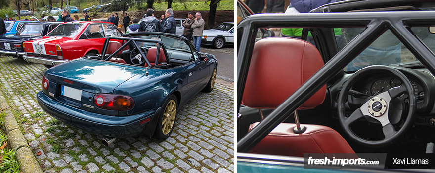 ¡Fijaros en este bonito MX5! Barras, un color elegante y un bonito interior en color burdeos. Una estética muy diferente a cualquier drift car.