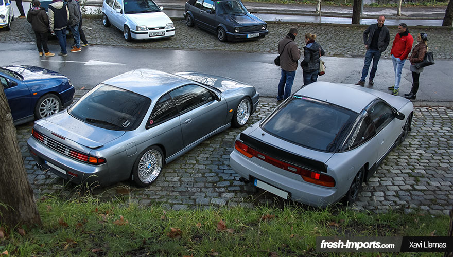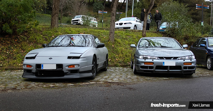 Xavi se acercó al lugar junto a Àlex y su VW Golf MKI Cabrio, aunque no lo hicieron en el mismo coche. Éste que veis en la fotografía, el nuevo S13 de Xavi junto al S14a de Sergi, a quien conocimos allí mismo.