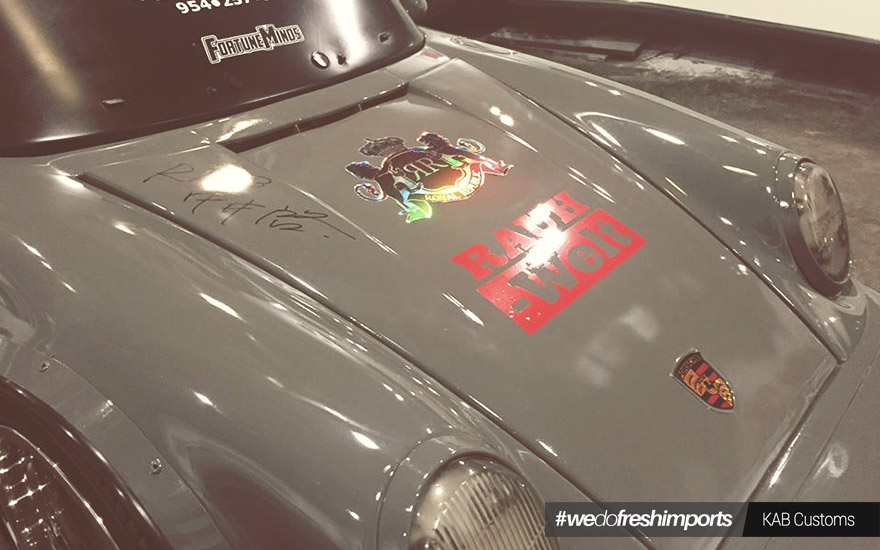 ¿Os acordáis de Andrés de KAB Customs Miami? Si hacéis memoria, es un amante de los coches japoneses y en su taller pocas veces entra alguno que no sea nipón. Como buen enamorado del mundo del motor, lo anterior no significa que también sea amante de coches diseñados por marcas de otros países. Como prueba, hace tiempo decidió adquirir este Porsche 964 carrera que decidió restaurar y montarle un kit turbo look dejándolo impoluto.