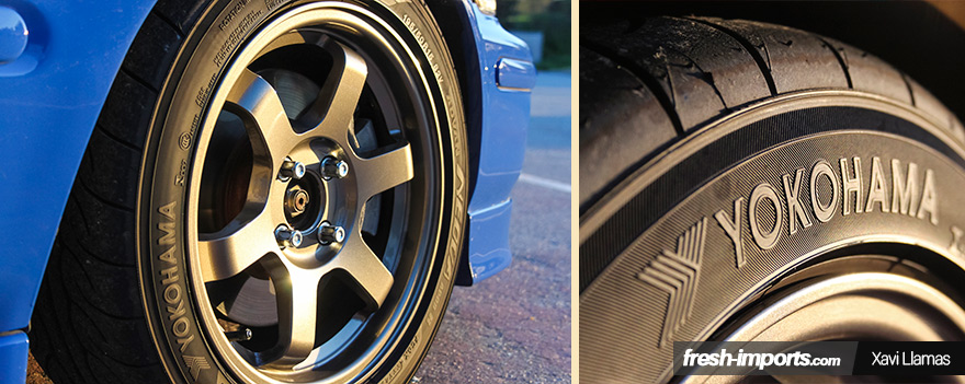 En el suelo, este EK3 se apoya sobre unas Rota Grid en 15×7″ ET40 envueltas en unos neumáticos Yokohama Advan Neova A08R.