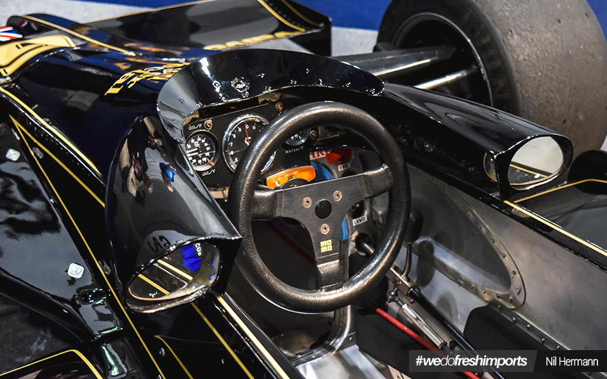 Y por último me encontré con el precioso John Player Special, el Lotus que pilotó Mario Andretti (también lo encontraréis aquí). Perteneciente de la época dorada de la Formula 1. Con un motor atmosférico V8 Cosworth de 2993cc y solo 588kg de peso, hacia que el coche fuera una auténtica bestia y algo difícil de dominar sin ningún tipo de ayudas electrónicas.