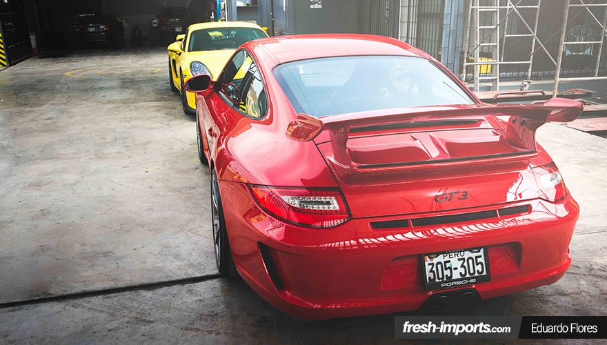 Después de la comercialización del primer Porsche Cayman GT4 en Perú, al poco tiempo, llegó el segundo al territorio Peruano. Fui testigo del encuentro entre este Cayman GT4 y un 997 GT3 en Pro Car Wash, un centro de detailing para el coche.