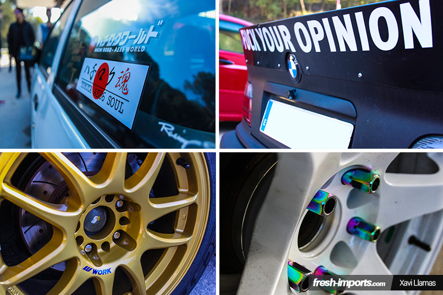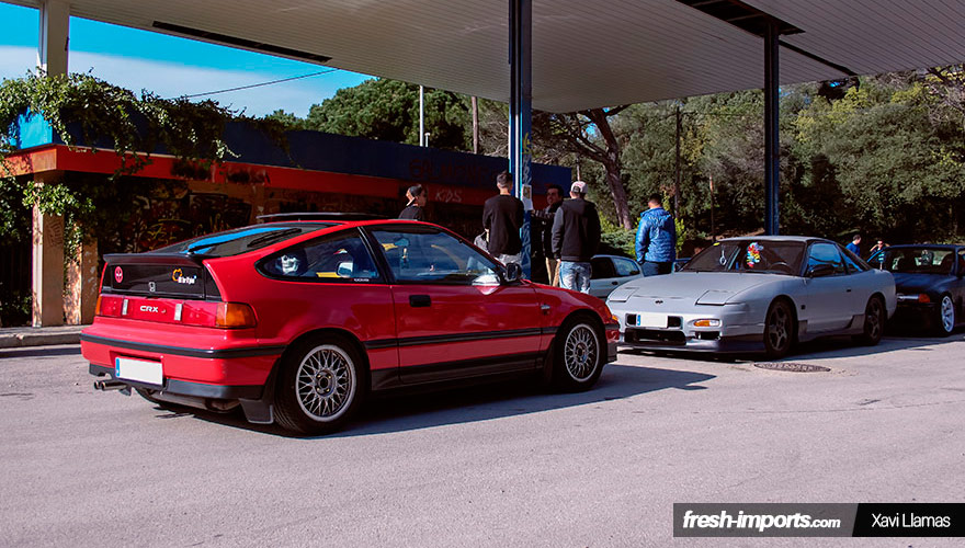 A penas 5 minutos más tarde cuando no acabábamos de asimilar la situación, aparecieron el AE86 Sprinter Trueno acompañado de un bonito Nissan S14 sobre unas llantas Work, y también de un Civic EK3 con decoración Spoon y un Civic 4th…