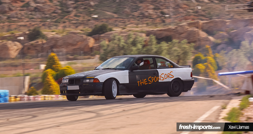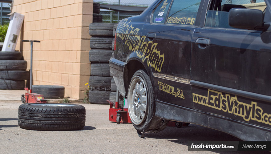 Ese pequeño trozo de foam, fue la alegría de los pilotos para el domingo. A modo de clipping point se inició un concurso de kiss the wall. ¡A ver quién la tiene más gorda! A pesar de levantarnos a todos de la cama de manera poco agradable, he de decir que Huertes bordó el domingo con su BMW E36.